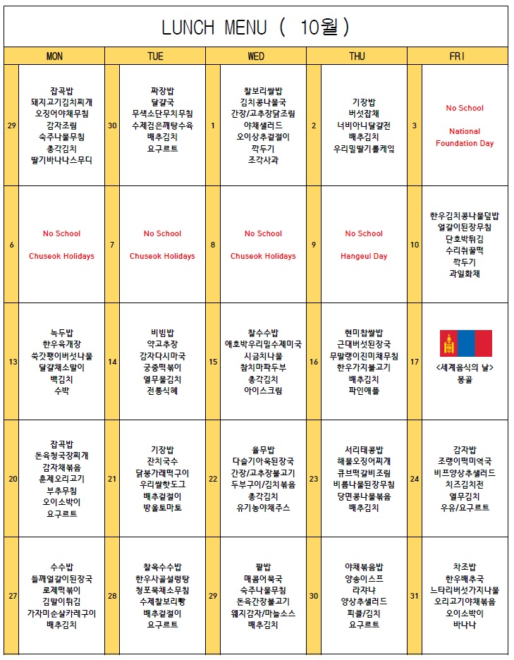 2025년 10월 점심메뉴
