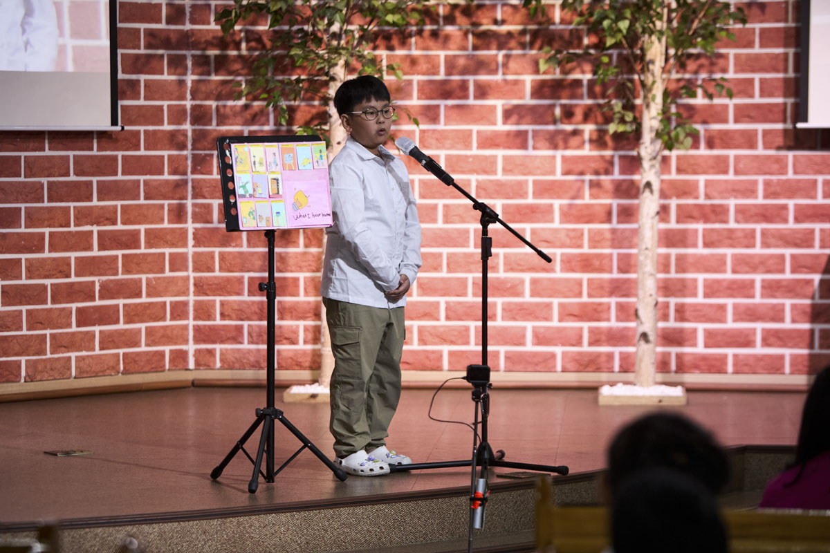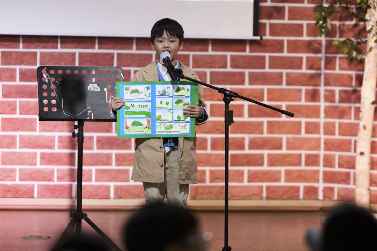 On October 13, our students took the stage for their first Essential Reading Book Report Presentation Day! Each student chose a book they had read, created a colorful folder book to organize key points, and used it as a visual aid while presenting their report in English.