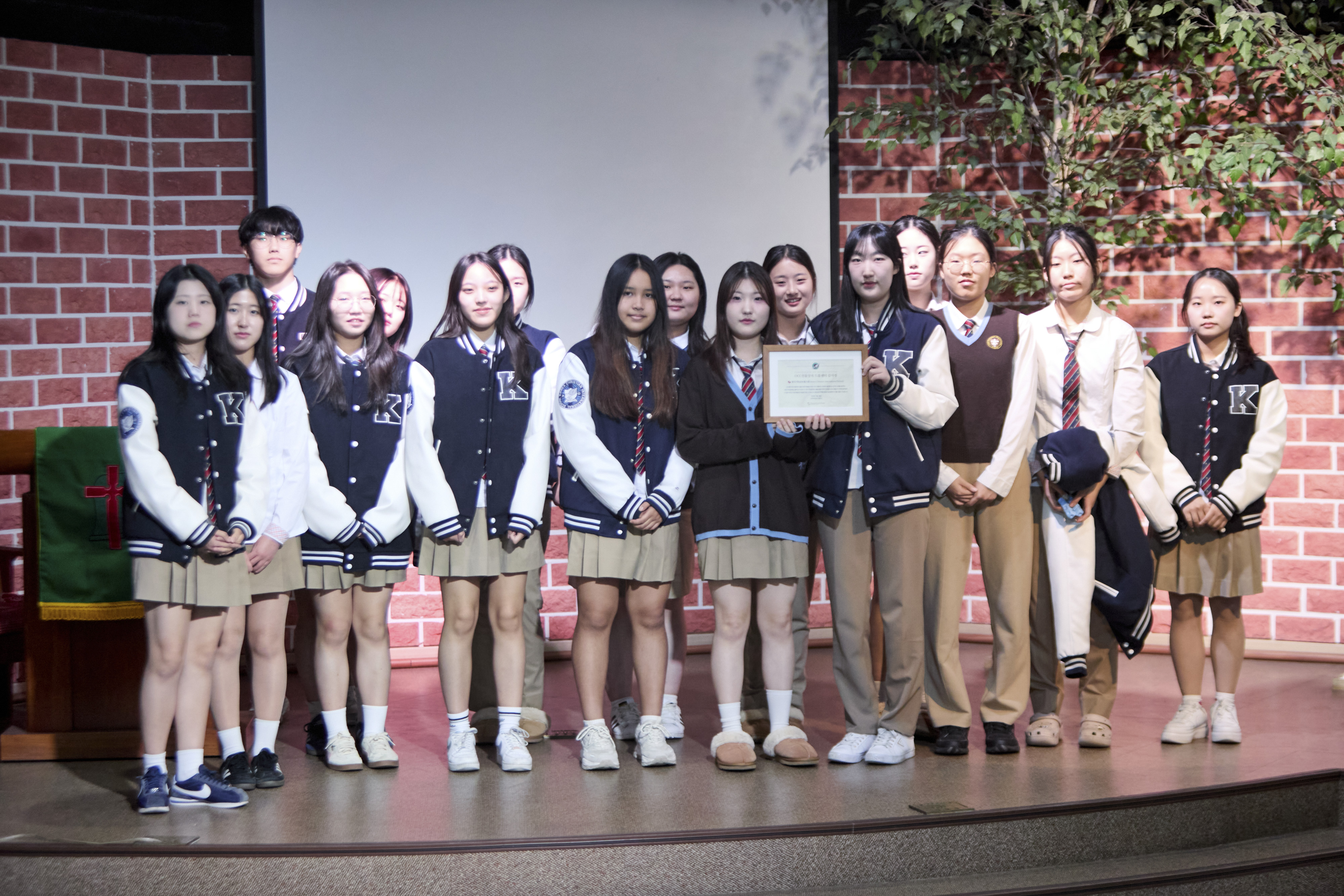 KCIS Receives Multiple Awards and Recognitions KCIS is proud to share several remarkable achievements and recognitions our school community has recently received. The Yeongdeungpo District Council honored KCIS with a Volunteer Service Award, recognizing the school’s continued commitment to community engagement and service. Our students also demonstrated excellence in innovation and teamwork through the VEX Robotics Competition, achieving outstanding results that reflect their creativity, collaboration, and problem-solving skills. KCIS remains dedicated to fostering not only academic excellence but also compassion, leadership, and global citizenship in all our students. ⸻ KCIS, 다양한 외부 기관으로부터 수상 및 감사장 수여 KCIS는 최근 여러 기관으로부터 의미 있는 상과 감사장을 수여받았습니다. 먼저, 영등포구의회로부터 지역사회 봉사활동에 대한 공로를 인정받아 자원봉사상을 수상했습니다. 아울러 KCIS 학생들은 VEX 로보틱스 대회에서도 창의성과 협동심을 발휘하며 우수한 성과를 거두었습니다. KCIS는 앞으로도 학문적 성취뿐만 아니라, 따뜻한 마음과 리더십, 그리고 세계 시민으로서의 책임감을 함께 길러가는 교육을 이어가겠습니다.